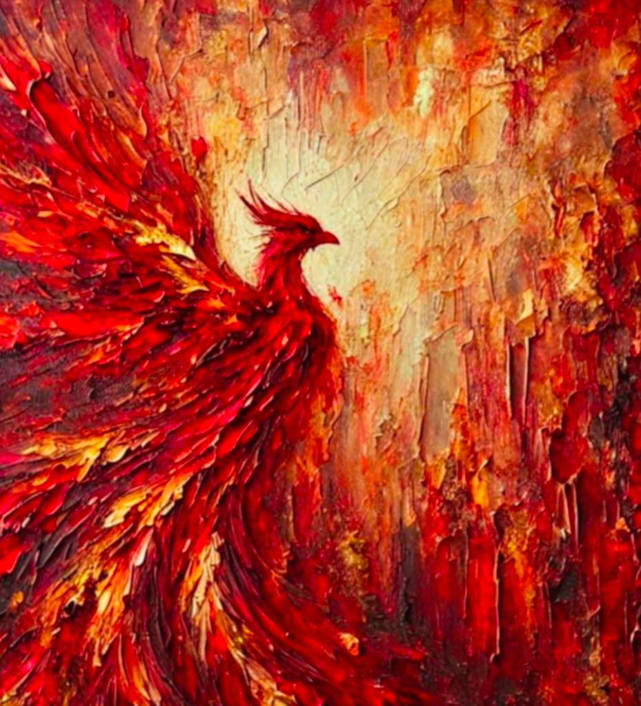 This piece, Phoenix in Flight, is not merely a painting of a mythical bird – it speaks of a kind of person:
